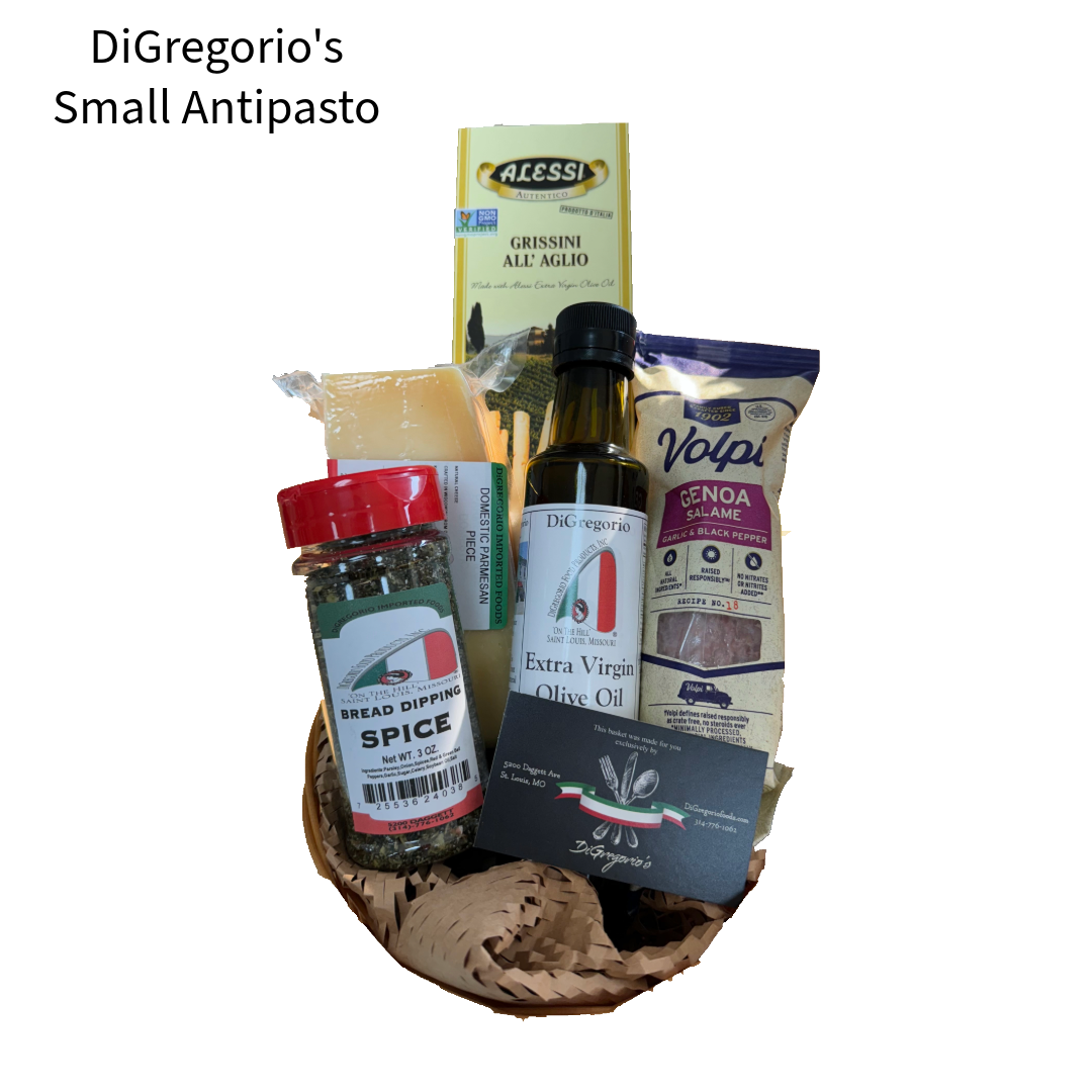 Contents: Breadsticks, Volpi Salame Chub, Extra Virgin Olive Oil, DiGregorio's Bread Dipping Spice, Cheese Wedge.